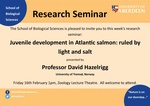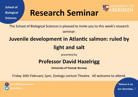 Professor David Hazlerigg will give the next talk in the SBS Friday research seminar series on his work with Atlantic Salmon.