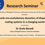 Dr Greta Bocedi from within the School of Biological Sciences at the University of Aberdeen will give her talk on eco-evolutionary dynamics as part of the Friday SBS research series.