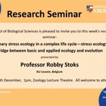 Professor Robby Stoks will be the guest presenter for the School of Biological Sciences Friday research seminar series.