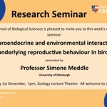 Professor Simone Meddle will guest present in the School of Biological Sciences Friday research seminar series.