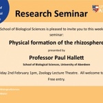 Professor Paul Hallett from the University of Aberdeen will talk about his work on understanding how biological and chemical processes interact with soil physical structure and transport properties as part of the School of Biological Sciences Friday seminar series.