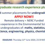 NERC UG RESEARCH EXPERIENCE PLACEMENTS - SUBMIT YOUR PROPOSAL NOW!