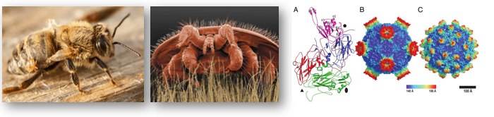 Honey bees are experiencing a drastic decline with serious consequences for pollination rates in the wild and agricultural food security. One important cause for the decline is the parasitic mite Varroa destructor which transmits deadly viruses such as the deformed-wing virus (DWV).