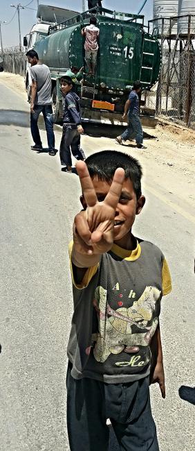 In Lebanon, the legacy of the Palestinian refugee experience means that Syrian refugees live in “informal settlements”. The majority of Syrian refugees in Jordan reside in urban areas, with only 9 percent living in refugee camps. At the beginning of the crisis, 2,500 to 4,000 refugees were crossing the Jordanian border daily from Der'aa in southern Syria. In July 2012 Za'atari camp, located in Mafraq, 7.5 miles south of the Syrian border, opened; the Azraq refugee camp opened in February 2014 and is located 55 miles from the Syrian border in Zarqa. Za'atari, described by one official as “safer than some of our cities,” is now the second largest refugee camp in the world, accommodating 100,000 refugees and arranged in twelve districts (district one is the most densely populated of these twelve districts). The camp has since developed and adapted to the needs of the refugees as far as is practicable. Young “barrow boys” race from the entrance of the camp ferrying materials back and forth in wheelbarrows to the Champs Elysees the often mentioned strip of shops in the heart of the camp, to earn money; there are schools in the camp for children who are not compelled to work. Similarly, while there is no sewage system at Za'atari, green water trucks and orange waste trucks meander in and out of the camp every day. Electricity cables coerced from their official paths escalate the cost of supplying power to the camp and further hinder crippling camp budgets. But nonetheless, Za'atari bustles and hums with the toing and frowing of refugee life.