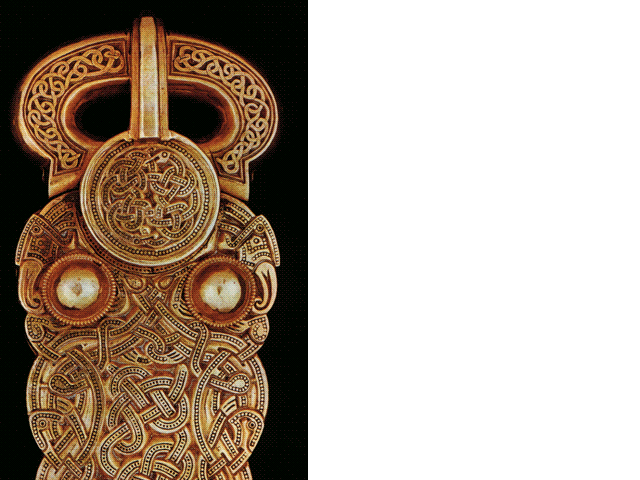 This is a gold belt buckle. The Anglo-Saxons liked to use twisting shapes