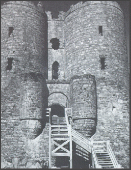 This is a picture of the Barbican at Harlech Castle in Wales. If you came to a castle as a friend and not an enemy, you would be allowed to cross the moat by a drawbridge and arrive at the Barbican. If the Porter there let you pass, you would leave your weapons and be taken into the castle itself.