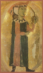 The singer is performing a poem by the 12th Century troubadour Bernart de Ventadorn (right). Troubadours were poet-singers from Provence in the south of France. They were famous for their lyrics about love.