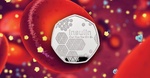 Inspired by an image of human insulin crystals through a microscope, the design by renowned artist Iris De La Torre, features a geometric pattern repeat using hexagons and circular shapes on the canvas of an official UK 50p coin.