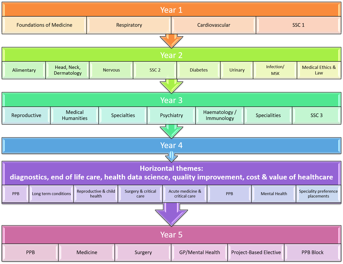 Five horizontal themes also arc across the curriculum: diagnostics, end of life care, health data science, quality improvement, cost and value of healthcare.