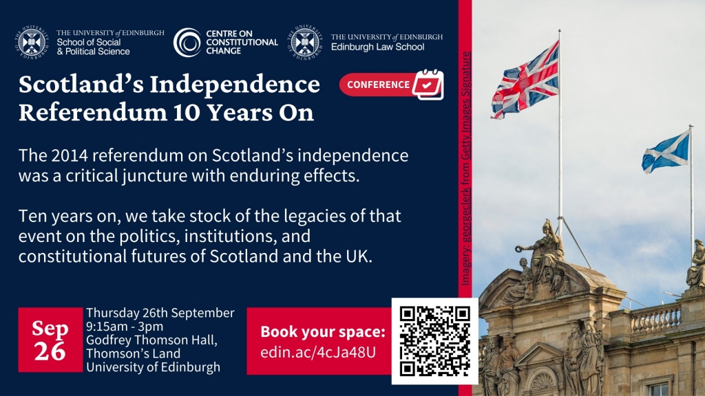 This event is co-sponsored by the Centre on Constitutional Change and the Edinburgh Centre on Constitutional Law. It takes place on Thursday, 26 September 2024. For more information.