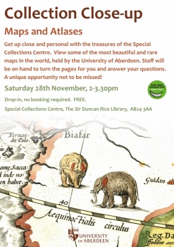 Get up close and personal with the treasures of the Special Collections Centre. View some of the most beautiful and rare maps in the world, held by the University of Aberdeen. Staff will be on hand to turn the pages for you and answer your questions. A unique opportunity not to be missed!