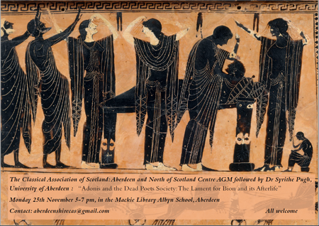 Will serve the North of Scotland. This semester's programme opens with a lecture by Professor Robert Segal, 'The Myth of Adonis' on 20 January 2020 at 17.15hrs, Room 302, MacRobert building, Aberdeen University.