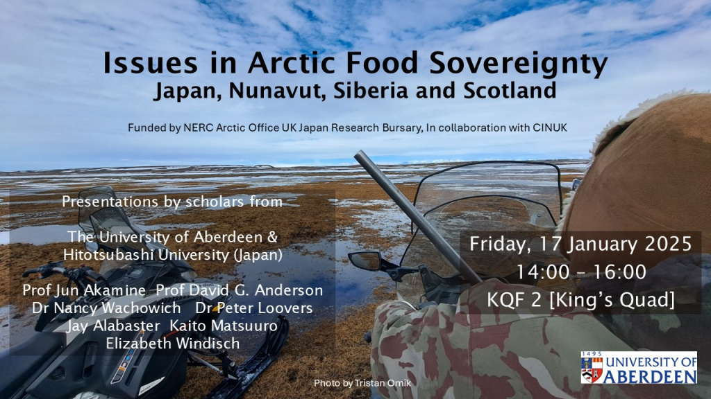 Presentations were given by several international scholars in KQF2, King's Quad at the University of Aberdeen about their work in Japan, Nunavut, Siberia and Scotland. Followed by Q&A. All were welcome.