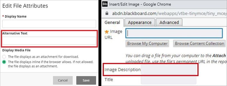 When uploading an image to MyAberdeen, you can add an alternative text/image description.