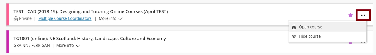 If you wish to reuse learning material across Ultra courses, you can copy it from one to another, as long as you are enrolled in both. To copy content, look for the ellipsis icon (three little dots) at the top right of the content area and select Copy Content. For full details, follow the advice given on the Blackboard Help Pages .