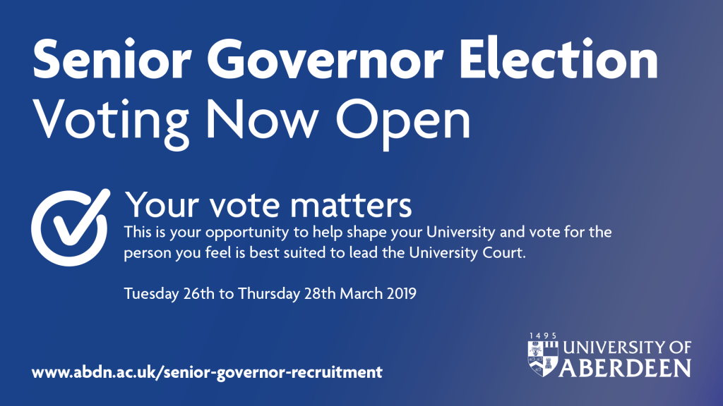 They will send you an email from onlinevoting@electoralreform.co.uk with a link to the voting sitewith the subject header “University of Aberdeen - Senior Governor Election 2019”. The e-mail and the voting link within it are authorised by the University and are safe to use.