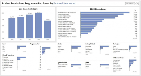 You may remember I wrote to you back in February about our significant investment into a new Data and Visualisation platform. Since then the project team has been working hard to deliver the first data area, Student Population, which considers the numbers and distribution of students across the University.