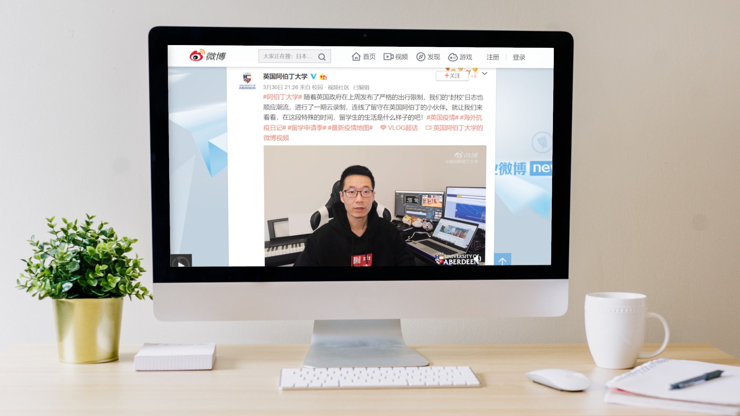 Chinese students, for example, have benefited from a series of vlogs on Weibo designed to update them about the latest guidance and advice. Aimed at both students and parents, they help to reduce stress and uncertainty. It included a live vlog with students to show what life is like while in lockdown in Aberdeen.