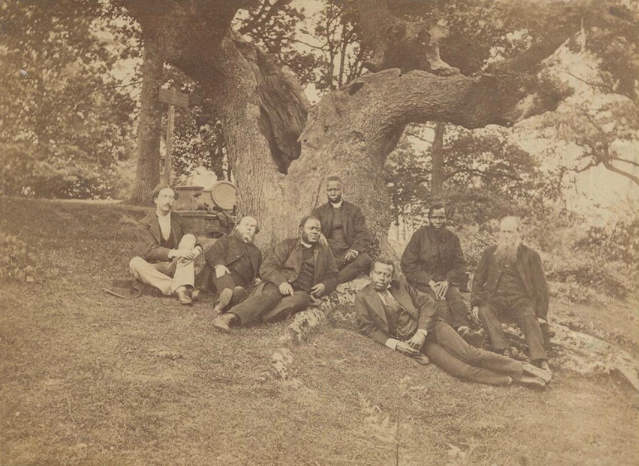 Missionary Meeting at the Wilberforce Oak, June 21, 1873. There are several known versions of this image. The image pictured here is courtesy of Between the Covers-Rare Books, Inc., New Jersey, where this copy was for sale in 2020.