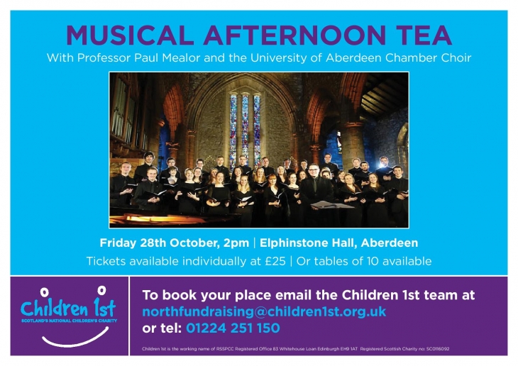 The very talented University of Aberdeen Chamber Choir and the Royal Wedding Composer, Professor Paul Mealor, will entertain guests with a musical afternoon tea on Friday 28 October!