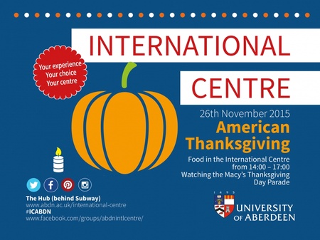 Come and celebrate American Thanksgiving in the International Centre with FREE American food and the Macy's Thanksgiving Day Parade!