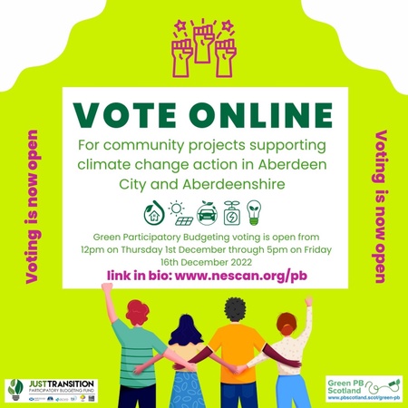 If you live in Aberdeen City or Shire, voting it now open for the Just Transition participatory budgeting!