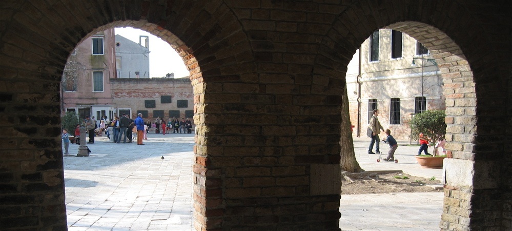 The second film is shot in the original Jewish ghetto in Venice, where the word 'ghetto' is thought to have been derived from the Italian word ‘geto’, meaning foundry. The site in the Cannaregio sestieri (district) was originally the location of fourteen copper foundries. When an influx of Sephardic Jews joined the city’s existing Jewish population, the authorities responded by passing a decree in 1516 that restricted them to an island ghetto. Christian guards were posted at the gated bridges, which accessed the ghetto, and stringent restrictions were placed on the community. As the Jewish population grew, the pentagonal-shaped Ghetto Nuovo expanded into two adjoining areas: Ghetto Vecchio and Ghetto Nuovissimo. The gates were not removed until Napoleon Bonaparte occupied the city in 1797, after which the Jewish population, which obtained full citizenship in 1818, gradually dispersed throughout the city and to the mainland.