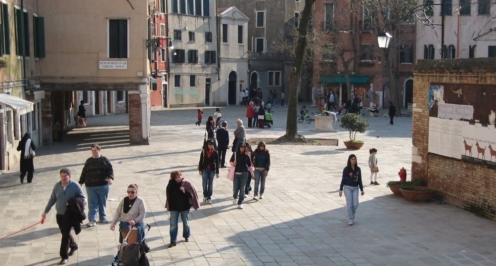 Of the Jews who were deported from Venice during the Holocaust, only eight returned. The Campo Ghetto Nuovo, the main square, has two memorials to victims of the Holocaust. Today there are five synagogues remaining and the Venetian Jewish community consists of around 440 people. In recent years, the Hasidic community of Chabad Lubavitch have established a yeshiva, a community centre and a kosher restaurant in the quarter. The film documents the shifting presence in the campo of the few Jewish occupants, the steady stream of tourists and school groups, and the large number of local non-Jewish residents from adjoining neighbourhoods who flock to the spacious square in the early evening.