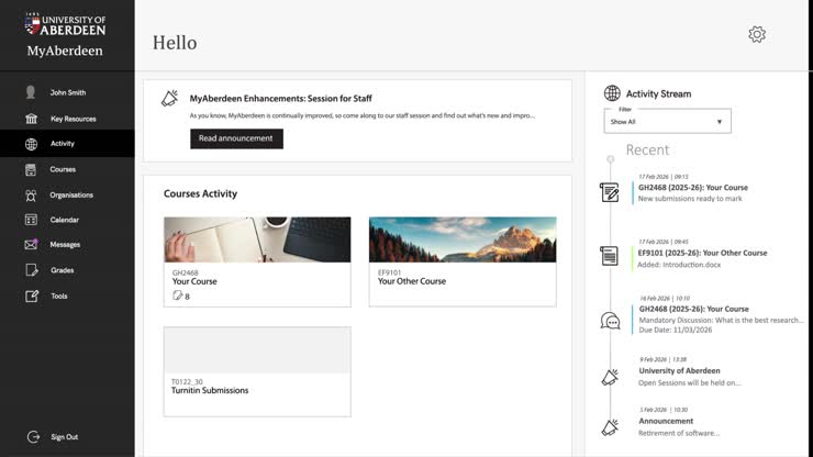 Please contact eLearning@abdn.ac.uk for any questions or issues related to MyAberdeen.