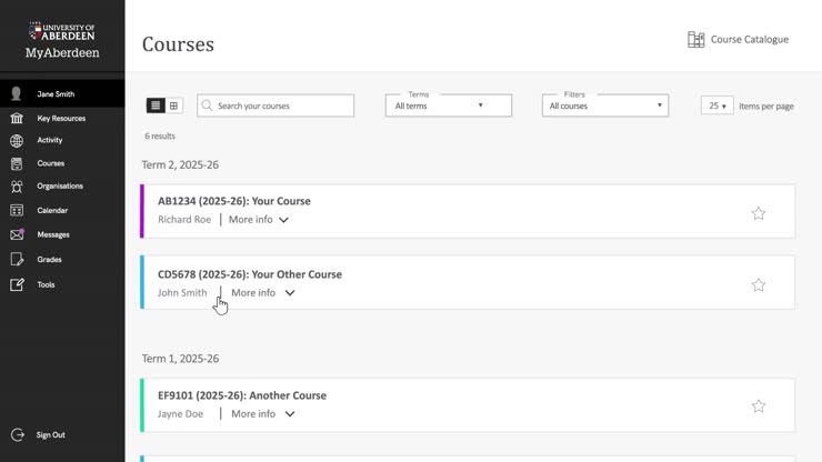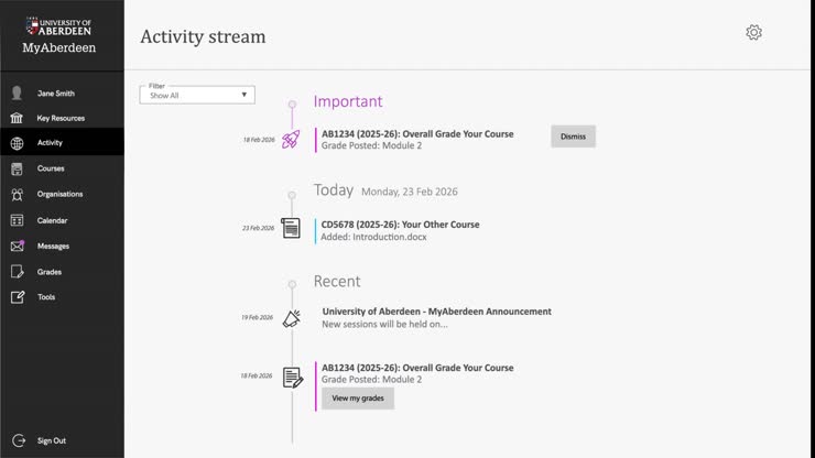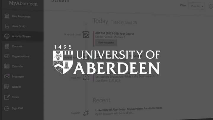 MyAberdeen is the University’s Virtual Learning Environment. This is where you will find learning materials, resources and notifications associated with your courses. It can be accessed on computers and mobile devices using most up-to-date web browsers.